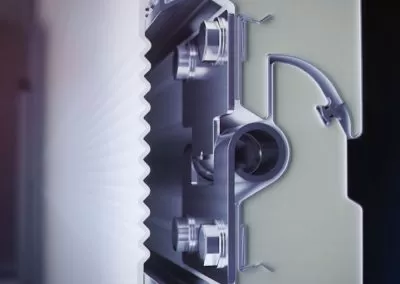 Gândită pentru garaje integrate în construcție, ușa utilizează panoul INNOVO de 60 mm (în loc de standardul de 40 mm), capace de panou și garnituri duble în partea superioară și inferioară – toate contribuind la un coeficient termic excelent de 0,33 W/m²K, ajutând la scăderea facturilor și la menținerea unei temperaturi constante în garaj